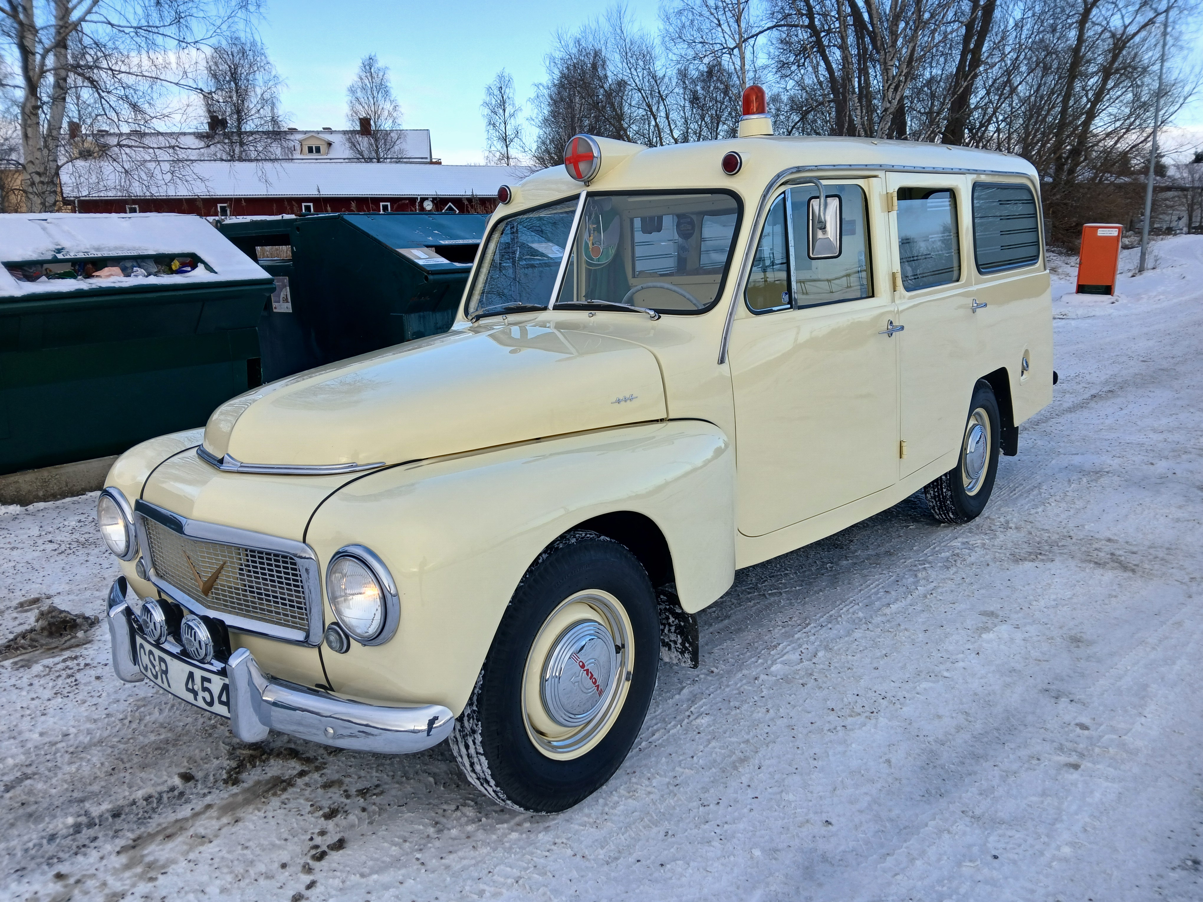 ![]() Volvo 445 ambulans.Grip kaross byggd på ett förlängt lev.chassi från 1957.Registrerad 1/1 1959.Renoverad 1998-2005.Prisbelönt på bilträffar,inte många tillverkade. |